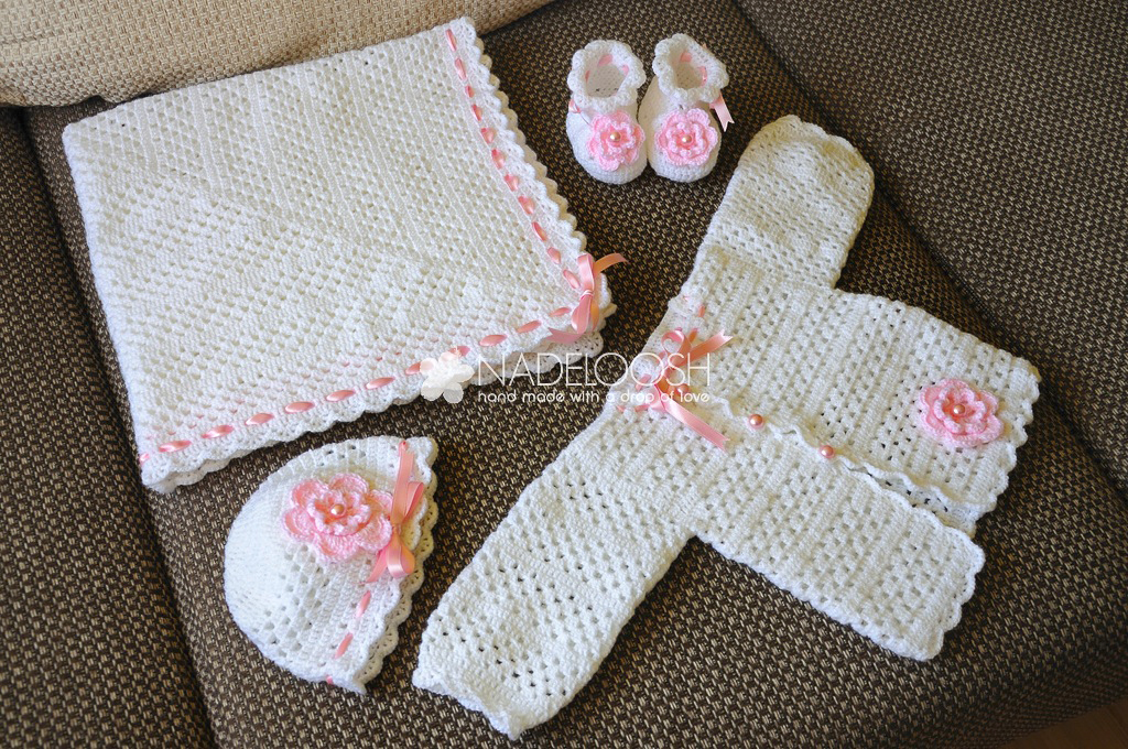 – paturica dimensiunea 80 x 80 cm, cu dantela crosetata pe margini si panglica roz din satin